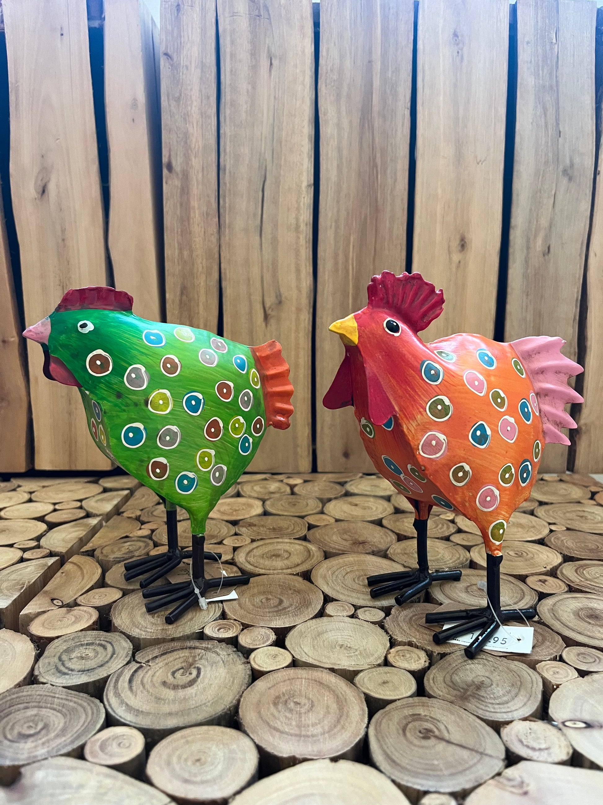 Sæt metal hane og høne - Grøn / Orange
